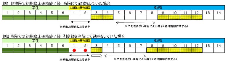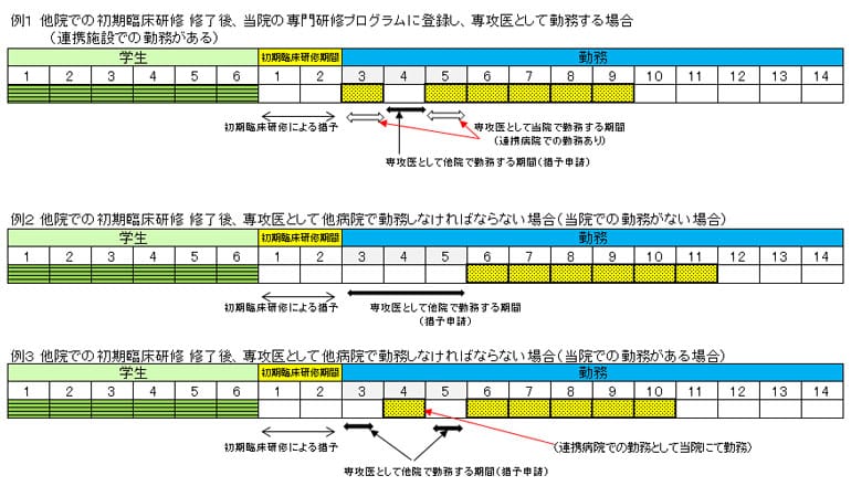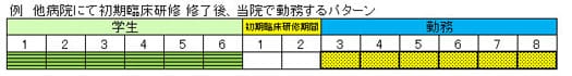 当院での2年間の初期臨床研修を修了した後、直ちに当院に2年以上勤務した場合には下記のとおり通算することができます。