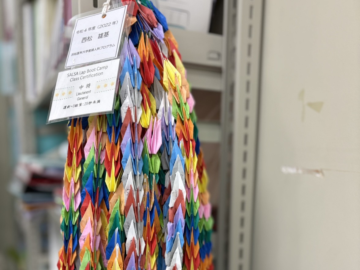 論文では、西松先生が初期臨床研修医の時に内視鏡下ドライボックスで自ら作成した折り鶴1000羽についてデータ分析されています。